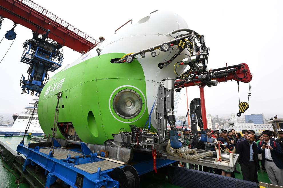 1月19日2026年,港的中国“搜求一号”科考船上正在停靠于智利中部瓦尔帕莱索,者”号载人潜水器人们观赏“搏斗。赫·比列加斯 摄新华社发(豪尔)